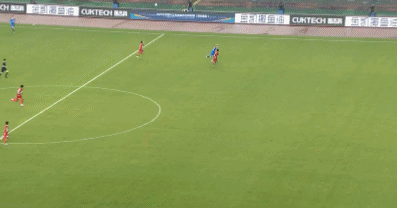 第55分钟,王凯旋门前单刀抽射,皮球击中球门横梁